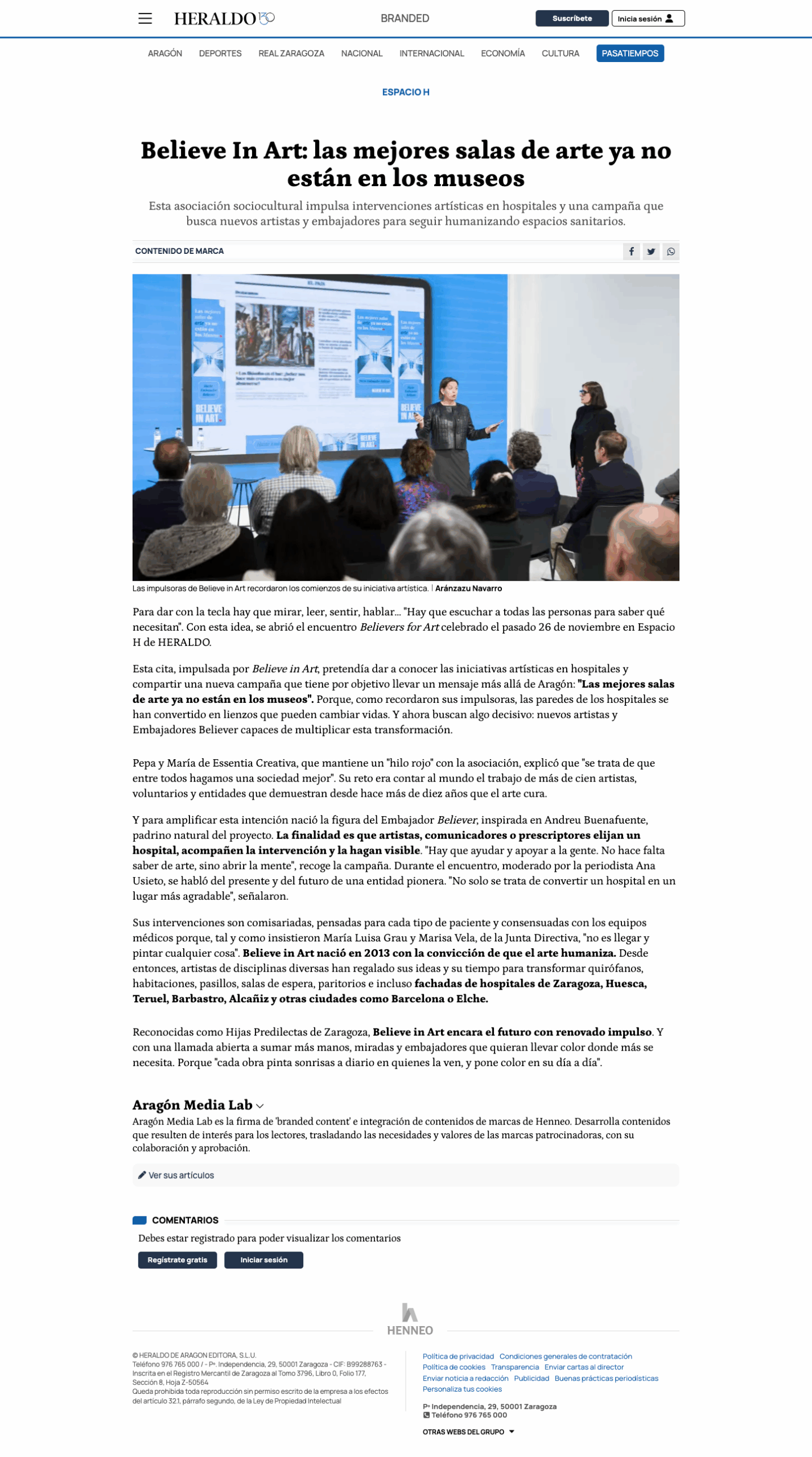 Con la reciente campaña “Las mejores salas de arte ya no están en los museos”, Believe in Art lanza una llamada clara a transformar emociones, acompañar procesos y aportar confort en momentos delicados. Desde 2013, Believe in Art ha llevado intervenciones artísticas a decenas de centros sanitarios en Aragón y otras regiones de España, con más de 150 obras realizadas por artistas generosos dispuestos a donar su talento.